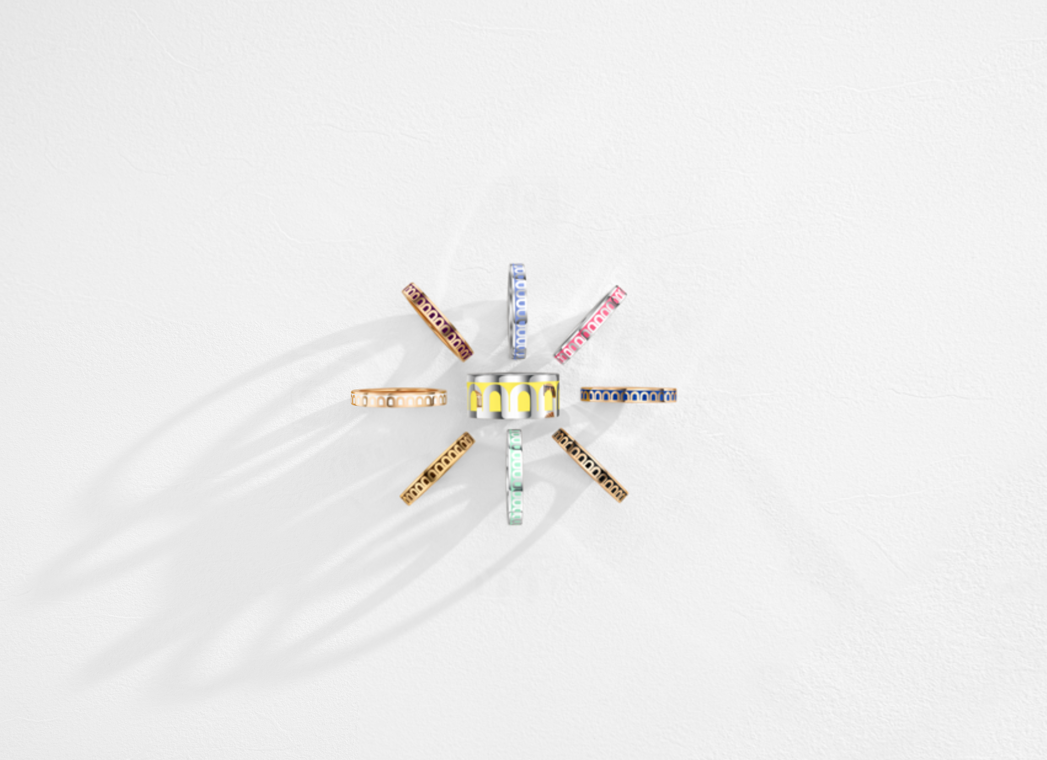 L'Arc de DAVIDOR Ring MM, 18k Yellow Gold with Riviera Lacquered Ceramic