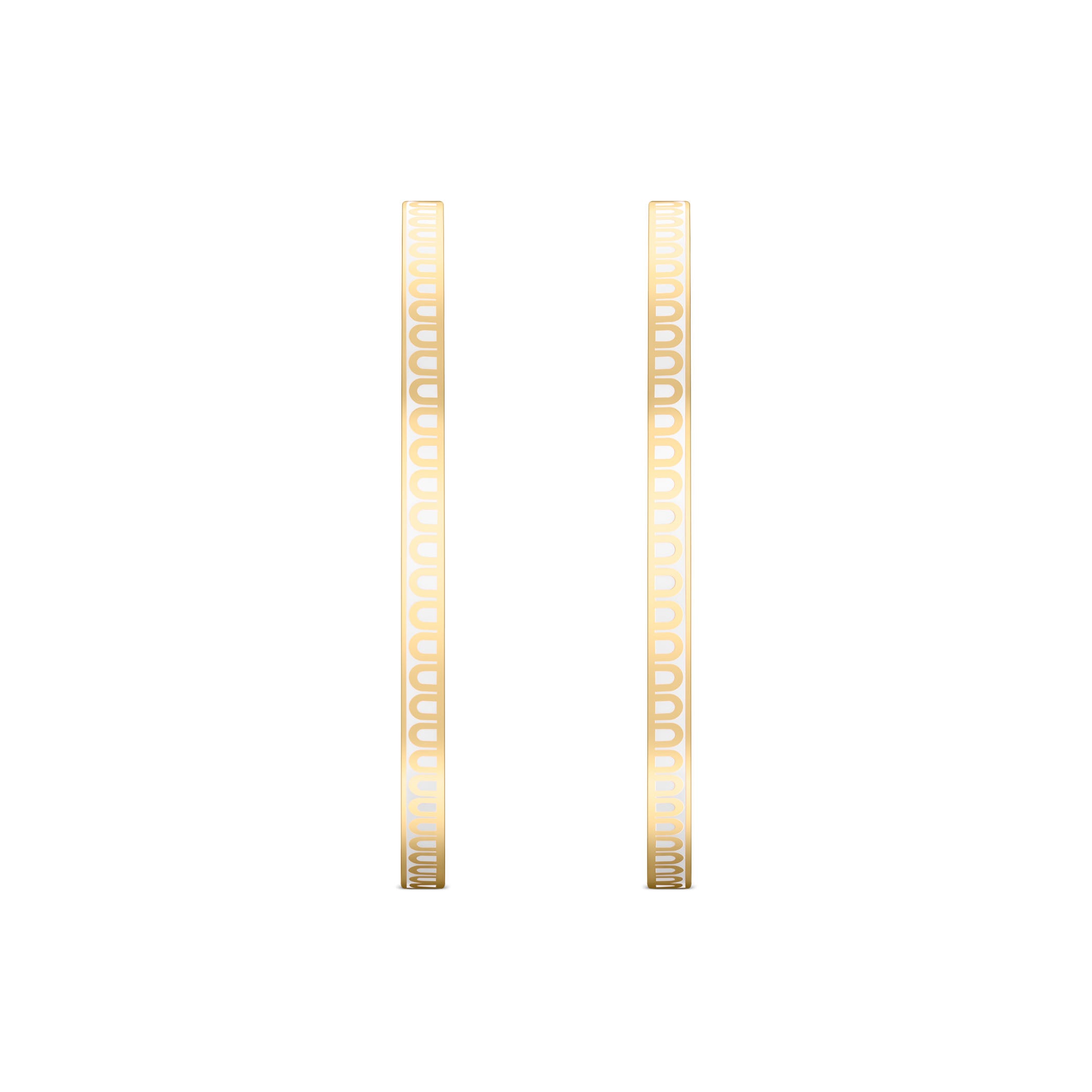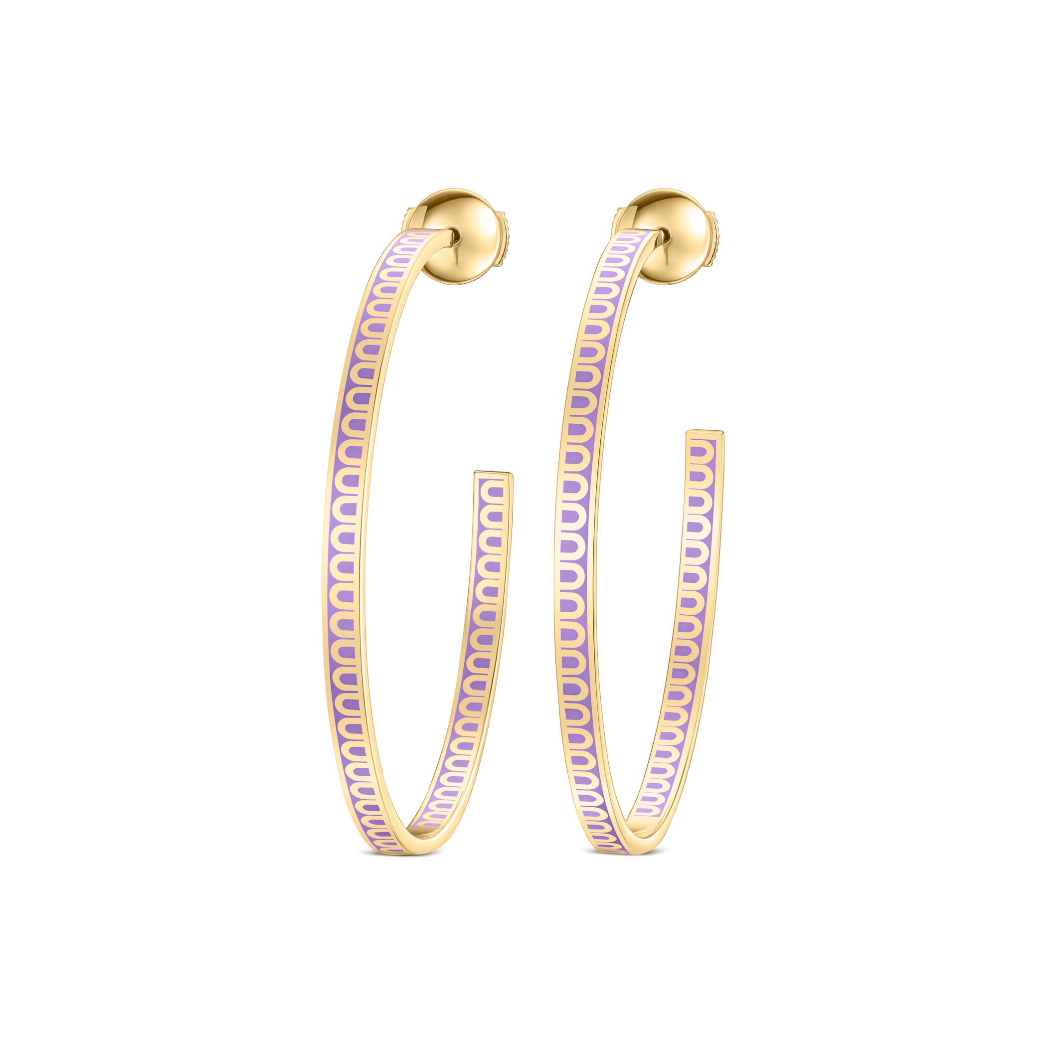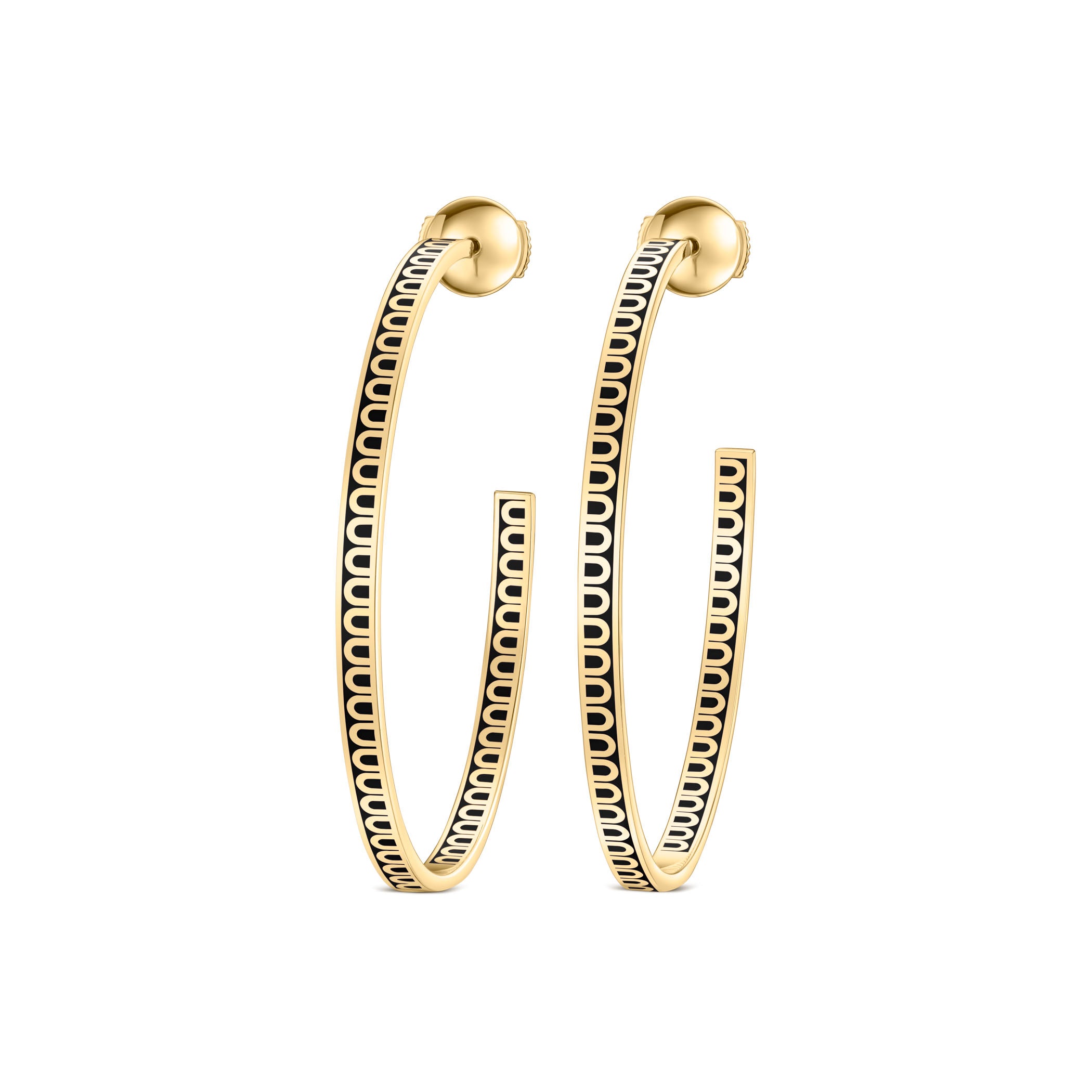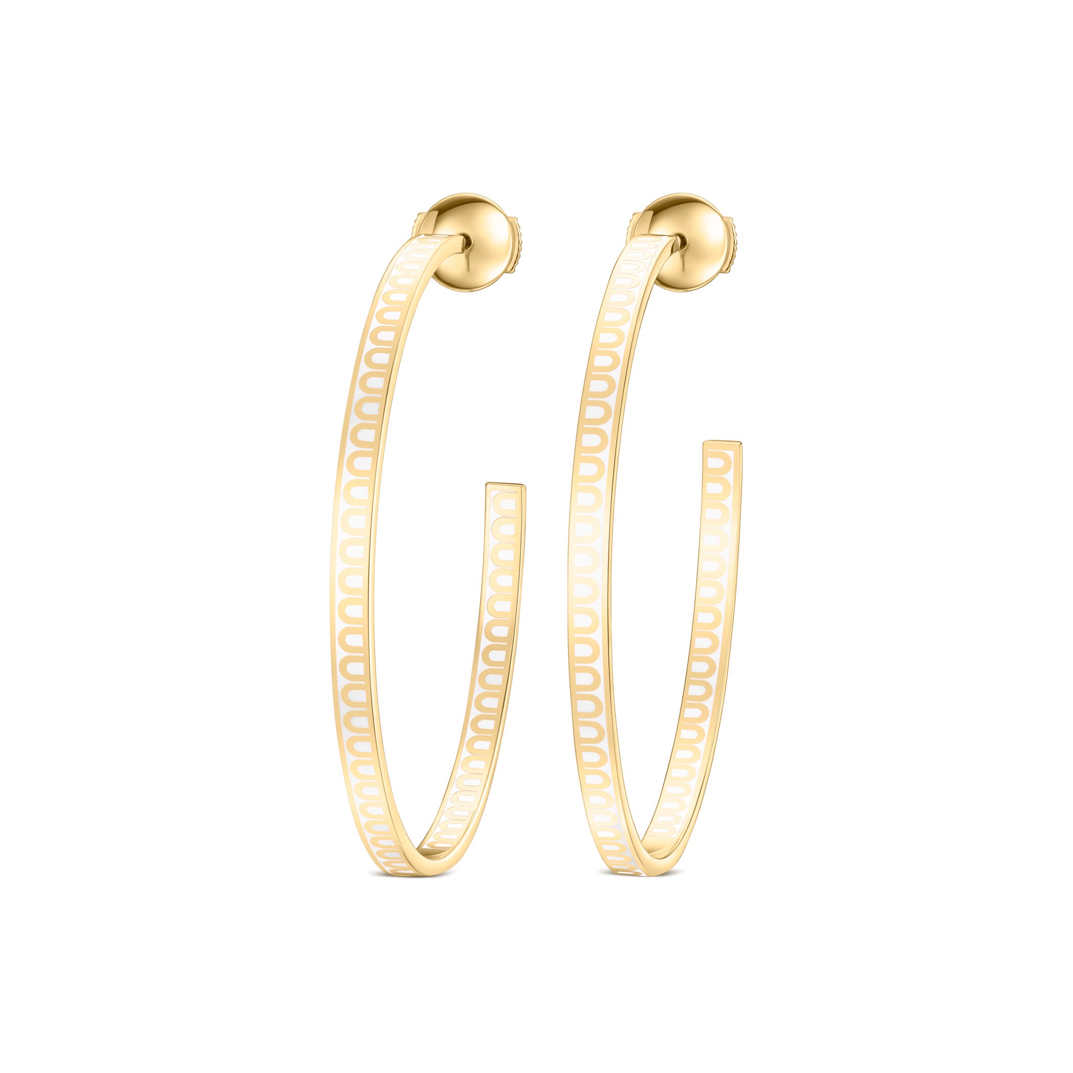 The signature L'Arc de DAVIDOR Creole Earring GM in 18k Yellow Gold with Lacquered Ceramic. This handcrafted earring features the iconic repetitive DAVIDOR Arch pattern and double secure squeeze-style back.  Crafted by hand in DAVIDOR's Paris Atelier.
