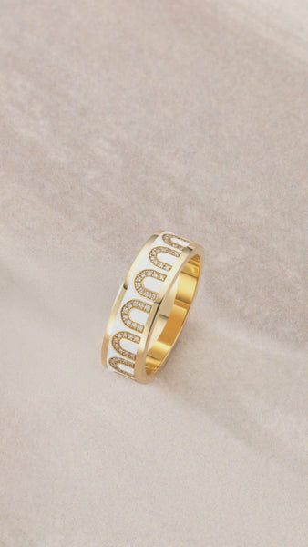 L'Arc de DAVIDOR Ring GM, 18k Yellow Gold with Neige Lacquered Ceramic and Porta Diamonds