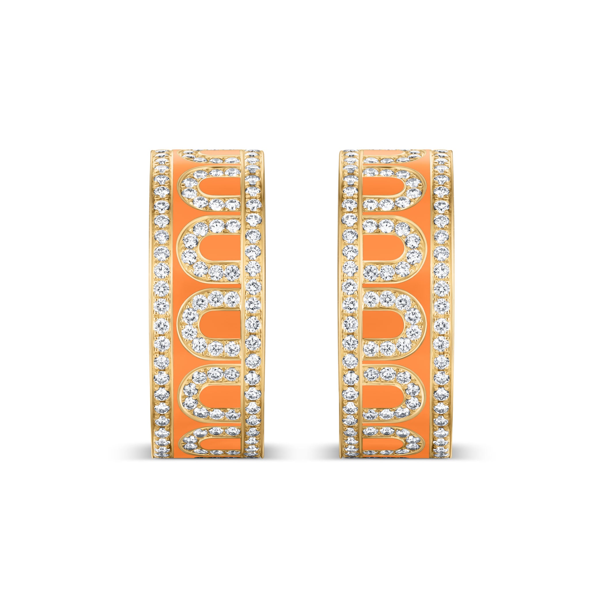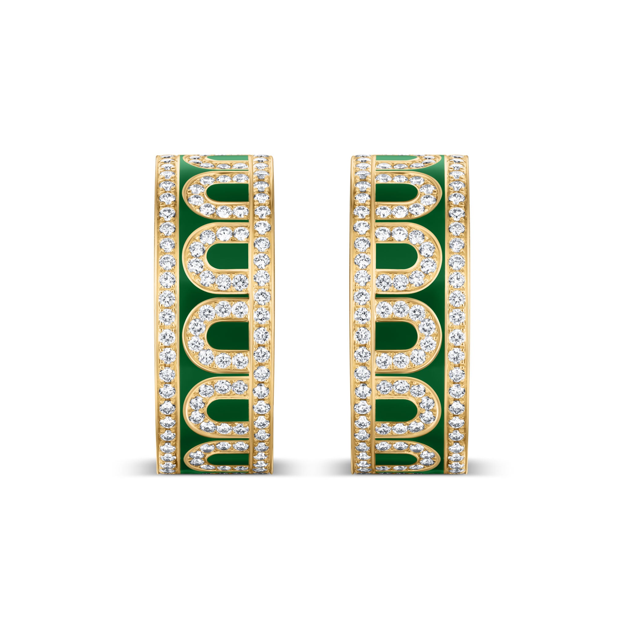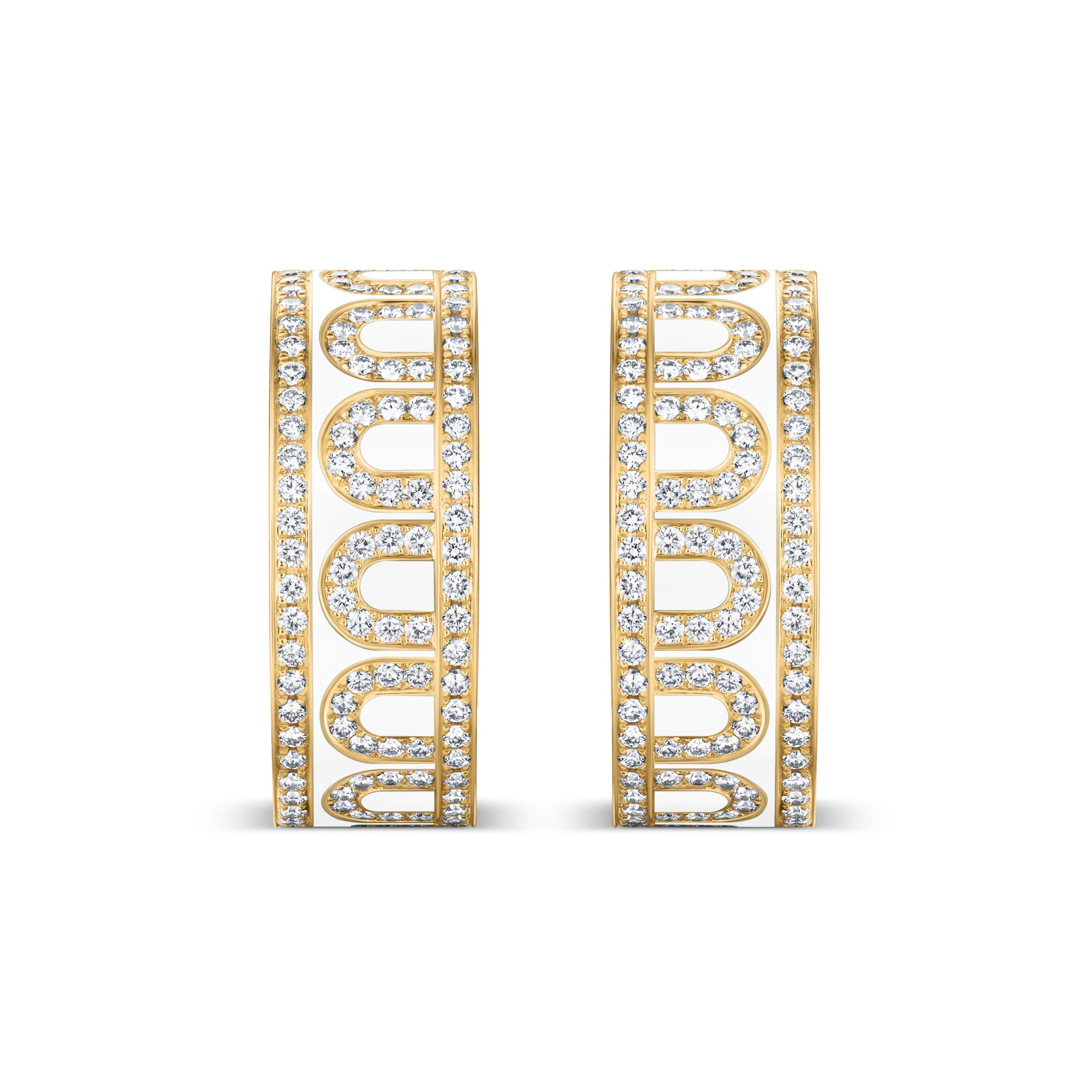 L'Arc de DAVIDOR Creole Earring PM, 18k Yellow Gold with Lacquered Ceramic and Palais Diamonds