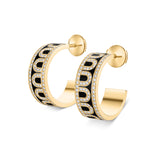 The signature L'Arc de DAVIDOR Creole Earring PM in 18k Yellow Gold with Lacquered Ceramic and Palais Diamonds. This handcrafted earring features the iconic repetitive DAVIDOR Arch pattern with diamonds on every arch and both borders and double secure squeeze-style back.