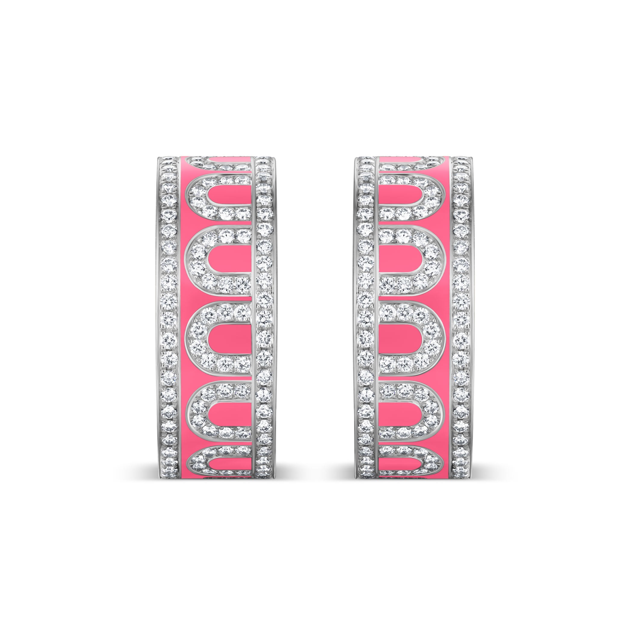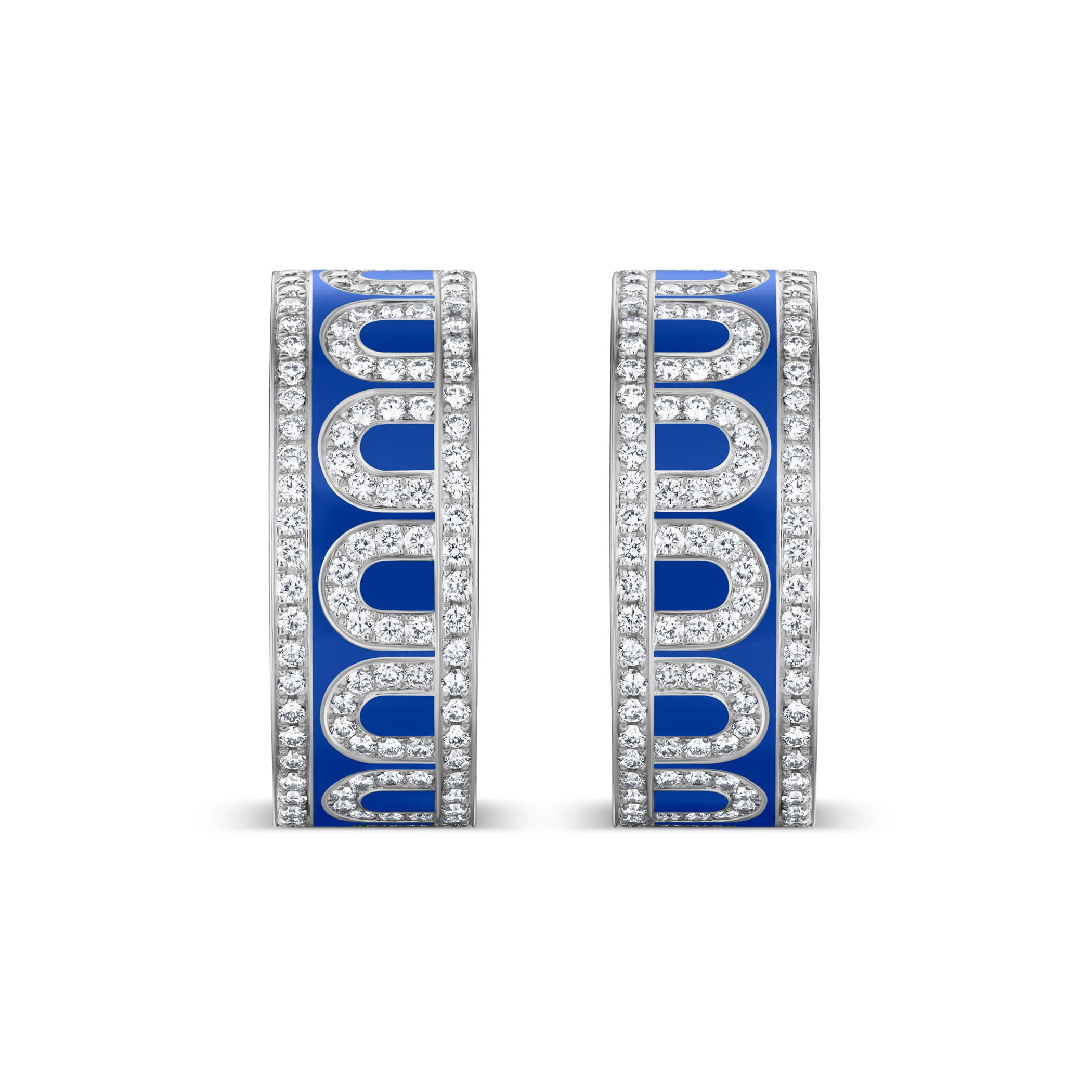L'Arc de DAVIDOR Creole Earring PM, 18k White Gold with Lacquered Ceramic and Palais Diamonds