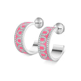 The signature L'Arc de DAVIDOR Creole Earring PM in 18k White Gold with Lacquered Ceramic and Palais Diamonds. This handcrafted earring features the iconic repetitive DAVIDOR Arch pattern with diamonds on every arch and both borders and double secure squeeze-style back.